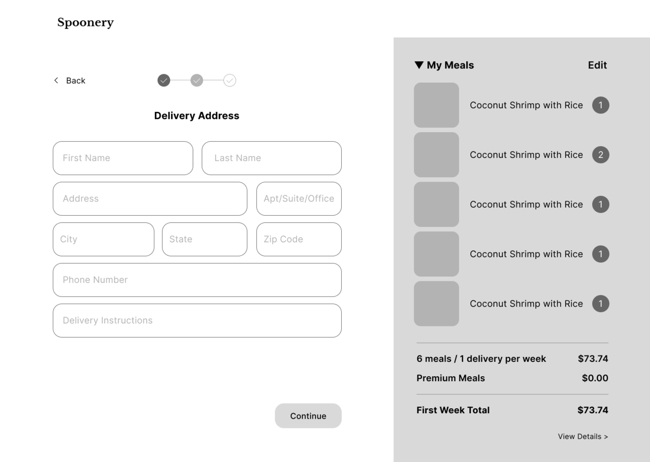(Meal Selection → Schedule Delivery → Address & Payment)