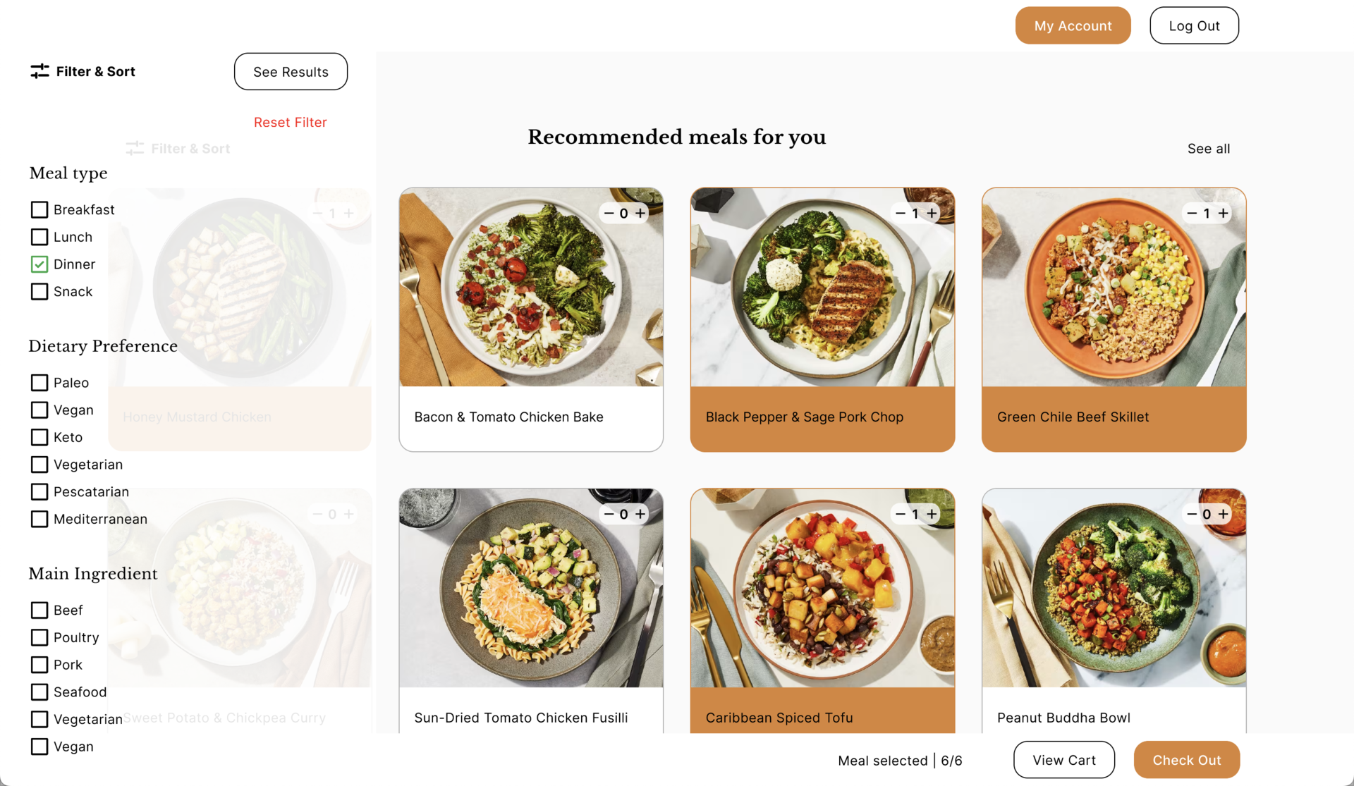 Meal Selection & Checkout Flow
